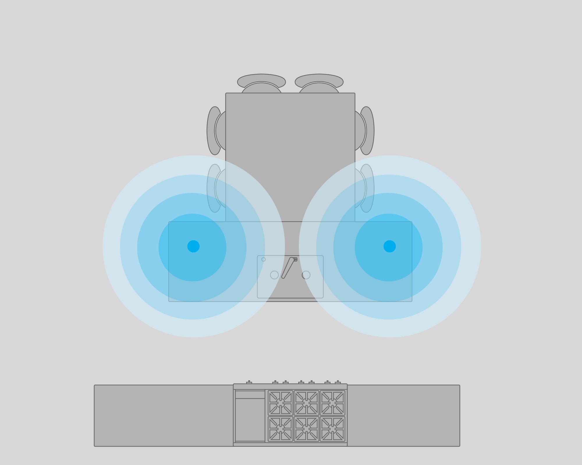 When designing an audio experience indoors, it is critical to provide even, balanced coverage to create an immersive environment. This balanced approach can be applied much like overhead lighting. An even dispersion of lighting can be achieved by placing multiple lights, spaced evenly throughout a room.