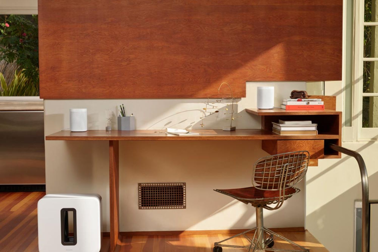 Add multiroom listening to the office with a compact One speaker that fits comfortably on your desk. Or stereo pair two for bolder, richer sound.
