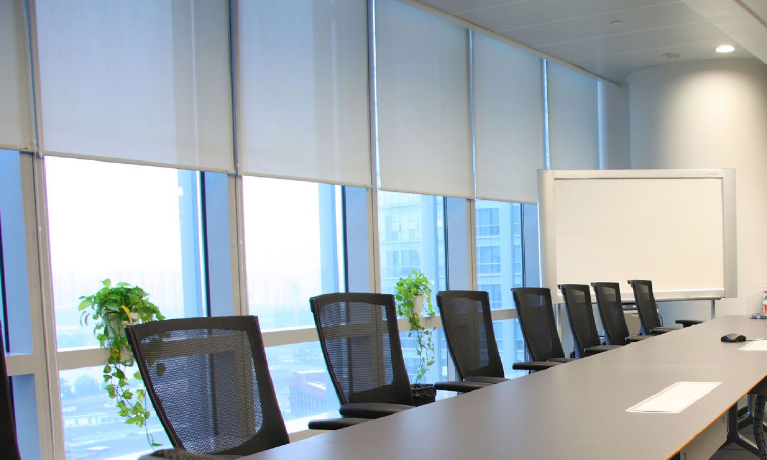 Revitalize your business with flawless control of natural light. Eliminate heat gain, glare and UV damage with motorized designer window treatments available in various fabrics and colors.